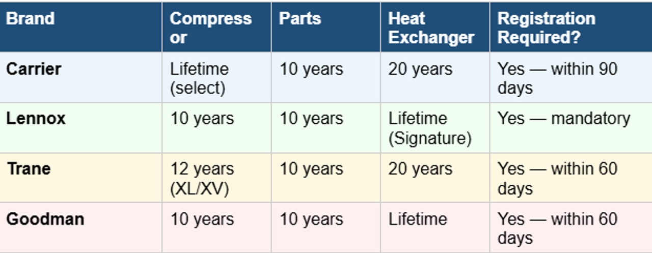 - Register your system immediately. Every brand requires registration within 60–90 days to unlock full warranty coverage.